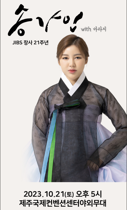 공연 만족도가 높은 트로트 가수 송가인 님이 10월 제주도에서 콘서트를 진행한다고 합니다. JIBS 창사 21주년 기념으로 제주국제컨벤션센터 탐라홀에서 진행되는 야외콘서트입니다. 예매 방법에 대해 자세히 정리해 드리겠습니다. 빠르게 예매 사이트로 이동하고 싶으신 분들은 아래 바로가기 버튼을 클릭하시면 됩니다.