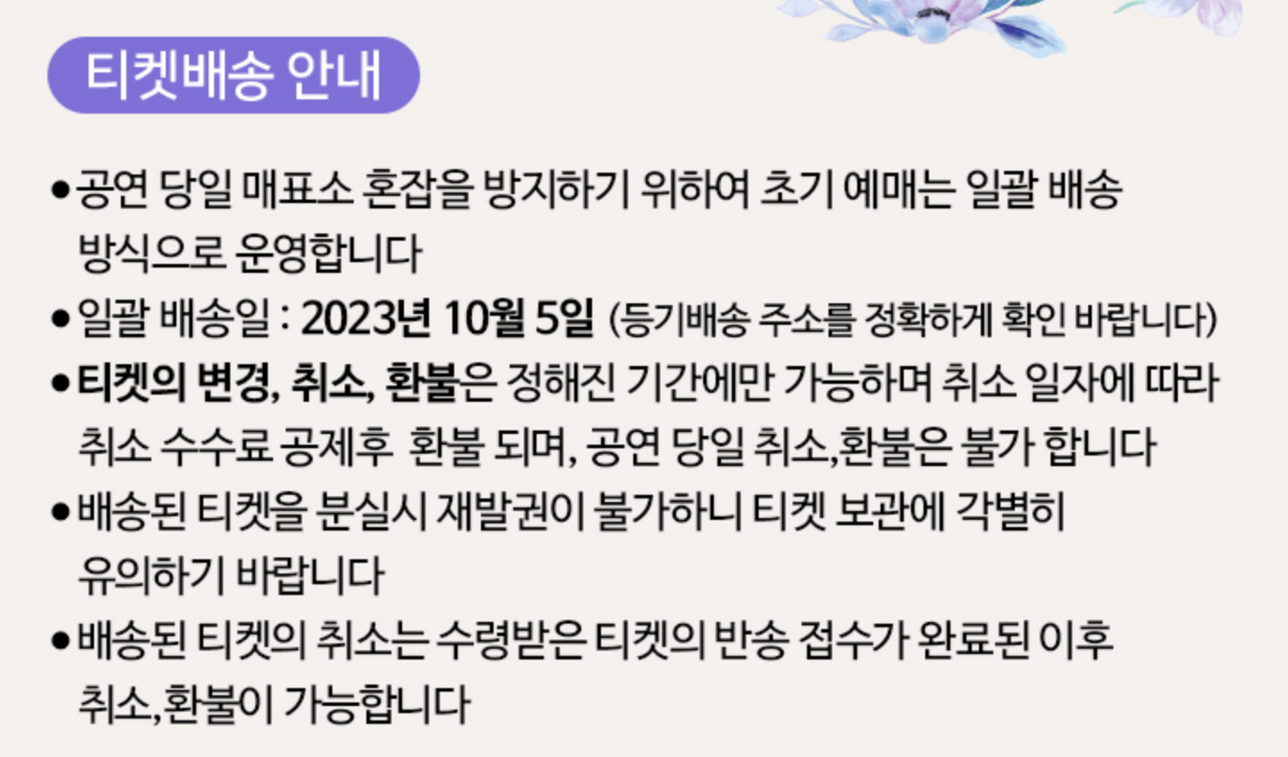 이번 송가인 콘서트는 인터파크 티켓을 통해서 예매가 가능하고, 아이디만 있으시다면 로그인해서 날짜와 시간을 선택 후 예약 진행해 주시면 됩니다. 해당 콘서트 티켓은 일괄 자택으로 배송되는 상품이므로 예매 시 주소 확인 꼭 해주시길 바랍니다.